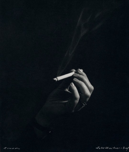 L’amour c’est comme une cigarette Lotte Meitner-Graf ~ Woman’s hand with cigarette, ca. 1960 Share this: Click to share on Facebook (Opens in new window) Facebook Click to share on Pinterest (Opens in new window) Pinterest Like Loading... Related Posted on February 28, 2012August 27, 2017 Posted in Lotte Meitner-Graf, Photography