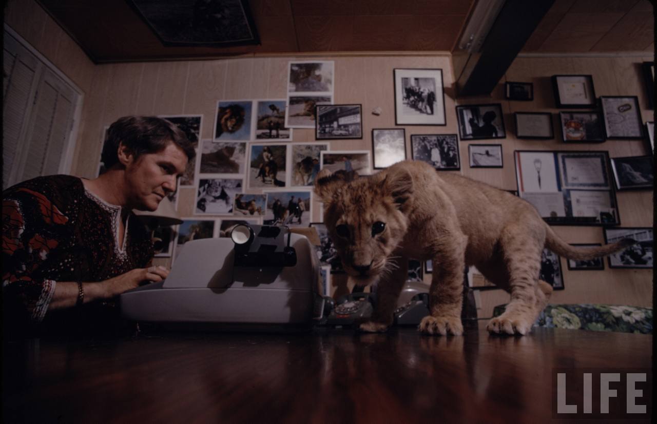 Photographer Michael Rougier and I made many visits. The two big lions never really liked us. I could tell. Threatening eyes. Teeth like broken glass. A look of red lightning.