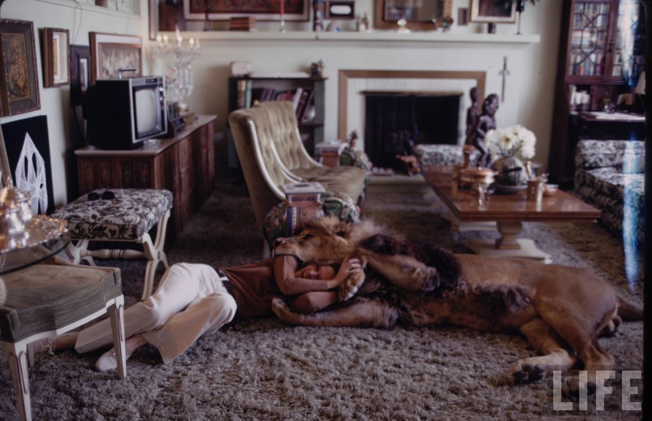 In the 1970′s, actress and model Tippi Hedren (mother of actress Melanie Griffith) created the Shambala Preserve after producing the film Roar. The preserve rescued exotic big cats living in captivity that had been abused or were in need of help, one of which the family created a close bond with. Neil the lion lived with the family in their home, and played an active role in the day to day activities of the preserve.