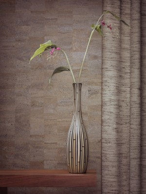 La ceinture, le plateau et le gradin de ce meuble sont ornés de dix-sept plaques de porcelaine à bouquets de fleurs sur fond blanc dans des encadrements verts et or enchâssés dans des montures de bronze. Neuf plaques portent la lettre date n de l’année 1766 et certaines sont signées des peintres de fleurs Xhrouet, Catrice et Pierre jeune. L’arrière du meuble est marqueté de branches de fleurs en sycomore et amarante. Le tiroir plaqué de bois de rose forme écritoire. C’est le marchand mercier Simon-Philippe Poirier qui fit appel à Carlin pour lui confier la fabrication de ce type de meubles agrémentés de plaques de porcelaine de Sèvres qu’il commandait à la manufacture. Onze tables de même modèle dont les plaques sont datées entre 1765 et 1774 sont répertoriées, notamment deux dans la collection Rothschild à Waddesdon Manor, et deux autres au Metropolitan Museum de New York. C’est l’antiquaire Seligmann qui vendit ce meuble à Moïse de Camondo, provenant des collections du comte d’Aubigny et du général baron de Charrette. Poirier avait livré une table semblable à Madame Du Barry et la comtesse d’Artois, belle-sœur du roi Louis XVI, en possédait également une.