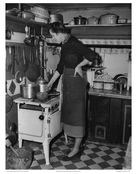 | Photograph by Paul Child ~ Julia Child at her apartment at 81 rue de l’universite in Paris, ca. 1950 [Collections of the Schlesinger Library] |